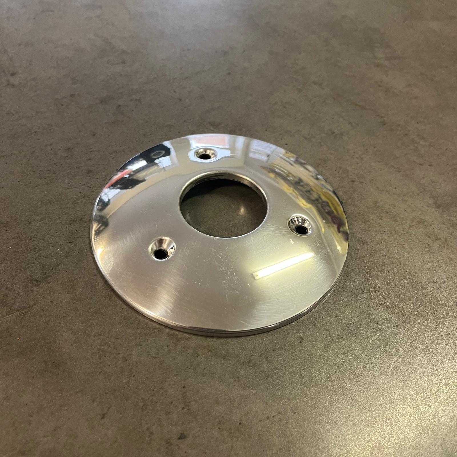 Hliníková krytka náboje předního kola určená pro motocykly Pionýr 555 a 05. Hliník je pro vyšší estetický dojem leštěný. Tento kryt je pevně uchycen k bubnu kola pomocí tří šroubů M5x10 s čočkovou hlavou, což zajišťuje spolehlivé a bezpečné uchycení.