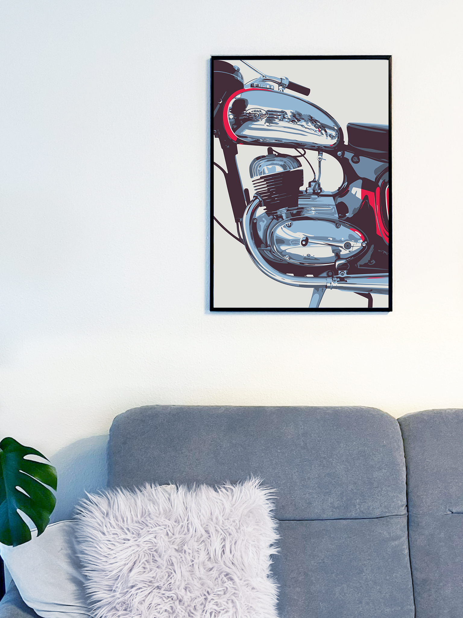 1. Historická hodnota a nostalgie: Jawa 250 Panelka je ikonou československého motocyklismu. Tento plakát přináší vzpomínky na dobu, kdy tyto motocykly brázdily silnice a staly se součástí mnoha příběhů. Je to víc než jen dekorace – je to kus historie.