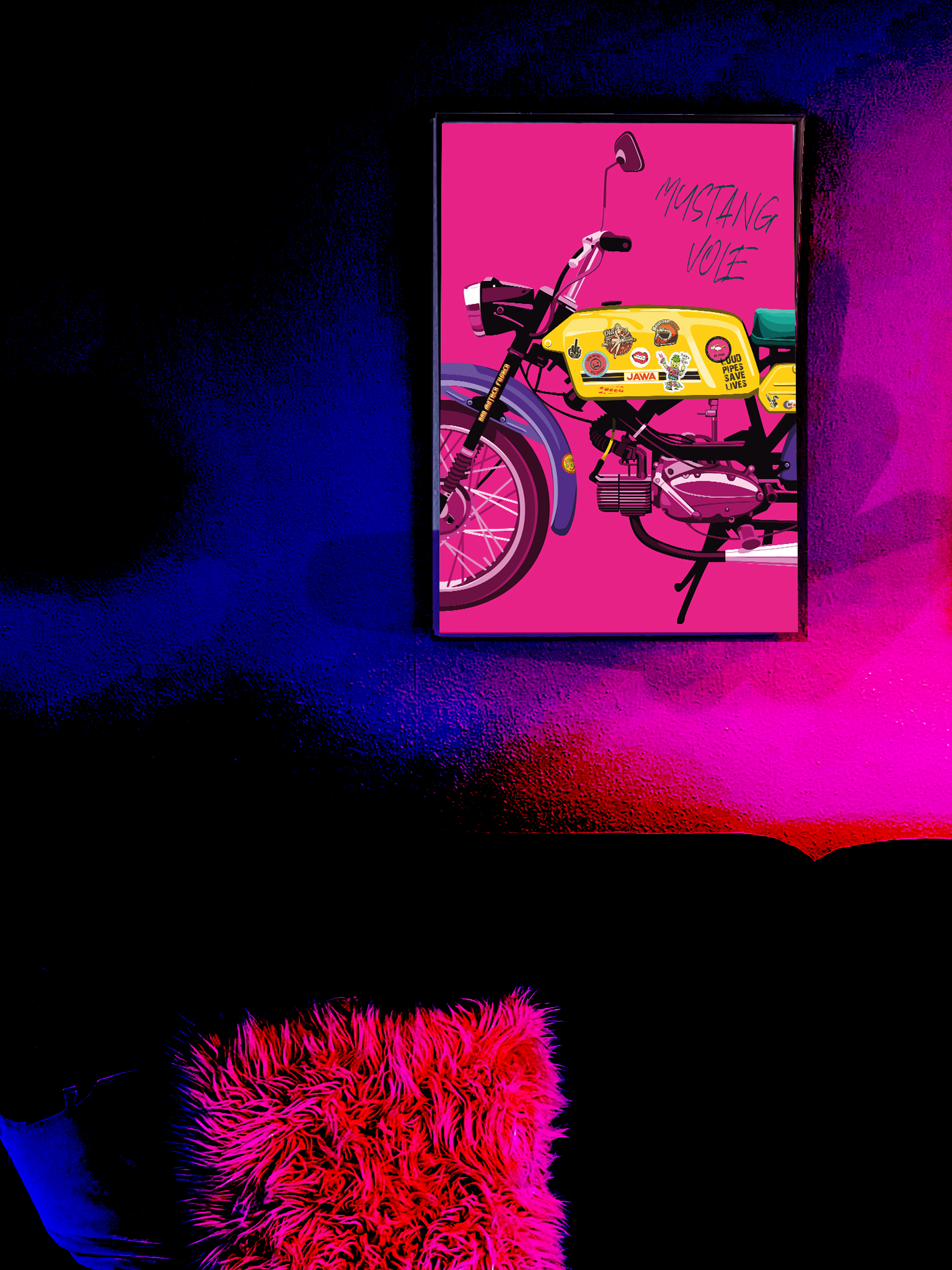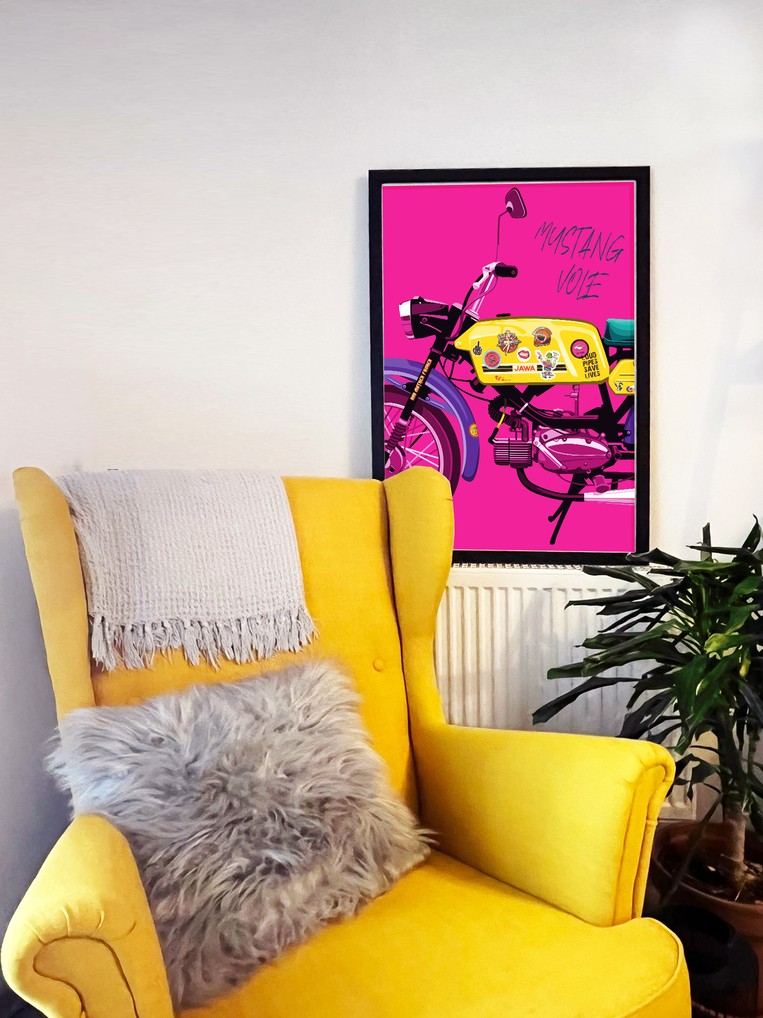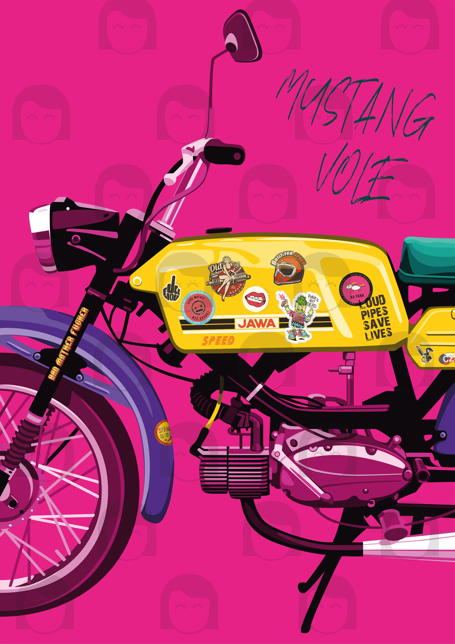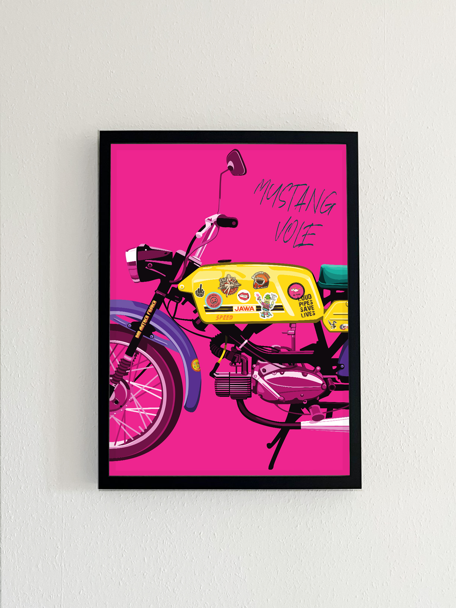 Představte si, jaký dojem by udělal tento nádherný MOTOPLAKÁT – RŮŽOVÝ MUSTANG VOLE! na stěně vaší dílny, bytu nebo kanceláře. Tento výjimečný produkt není jen obyčejným plakátem, je to kousek historie a vášeň pro motocykly zachycená v umělecké podobě. Plakát vznikl v autorské dílně Malá bulgarinka v rámci projektu Motoplakáty.