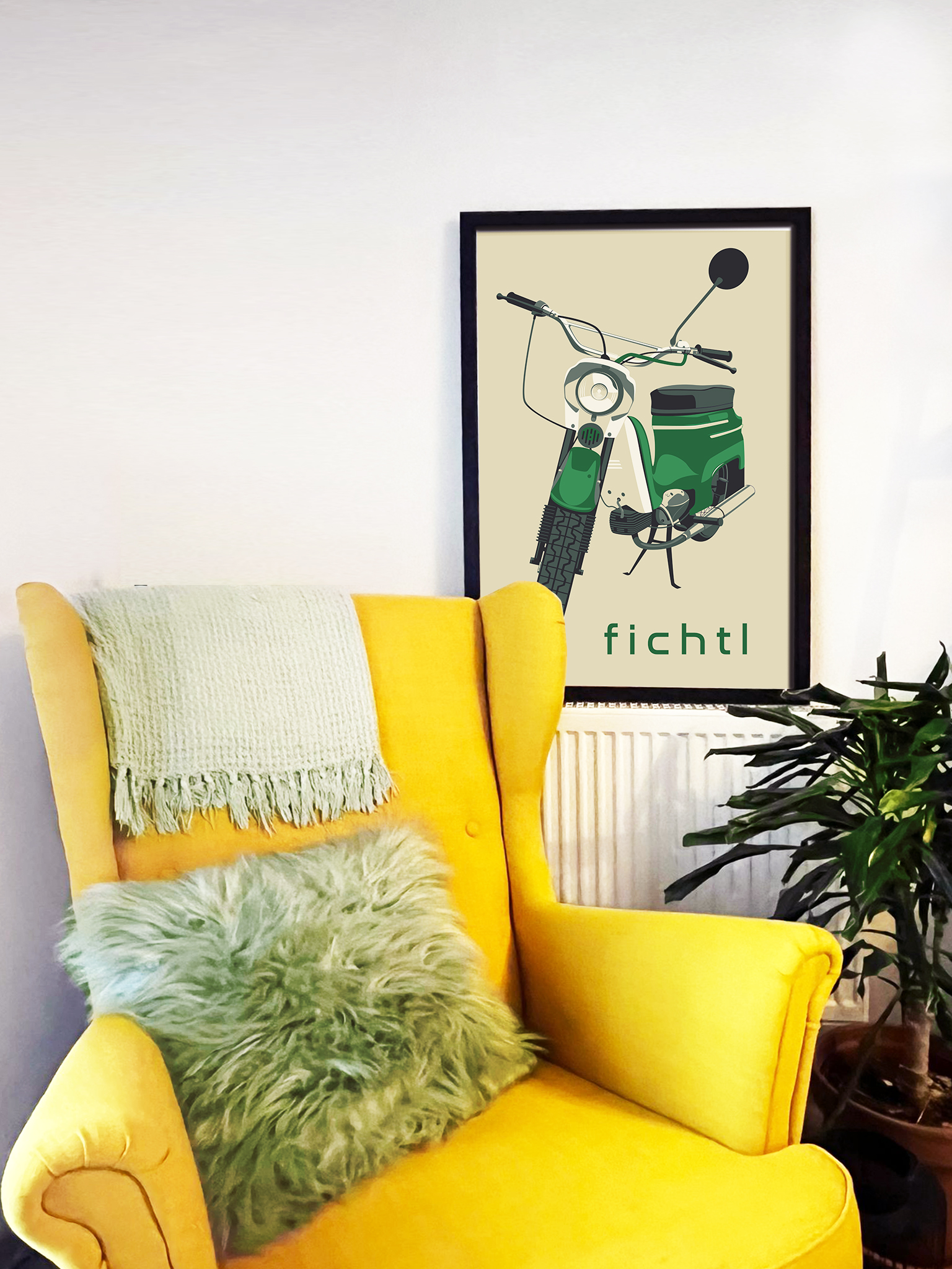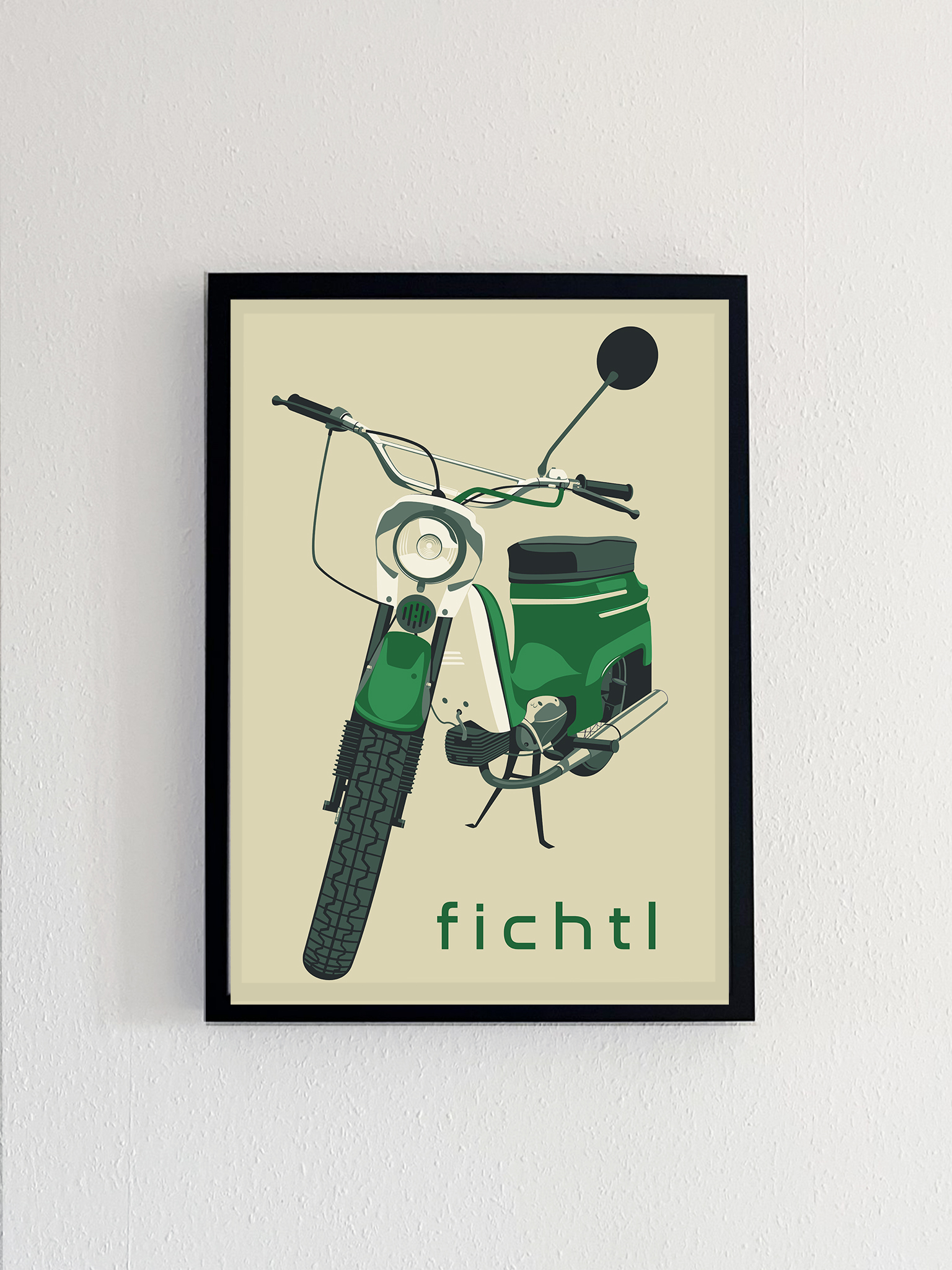 Představte si, jaký dojem by udělal tento nádherný MOTOPLAKÁT – ZELENÝ FICHTL na stěně vaší dílny, bytu nebo kanceláře. Tento výjimečný produkt není jen obyčejným plakátem, je to kousek historie a vášeň pro motocykly zachycená v umělecké podobě. Plakát vznikl v autorské dílně Malá bulgarinka v rámci projektu Motoplakáty.