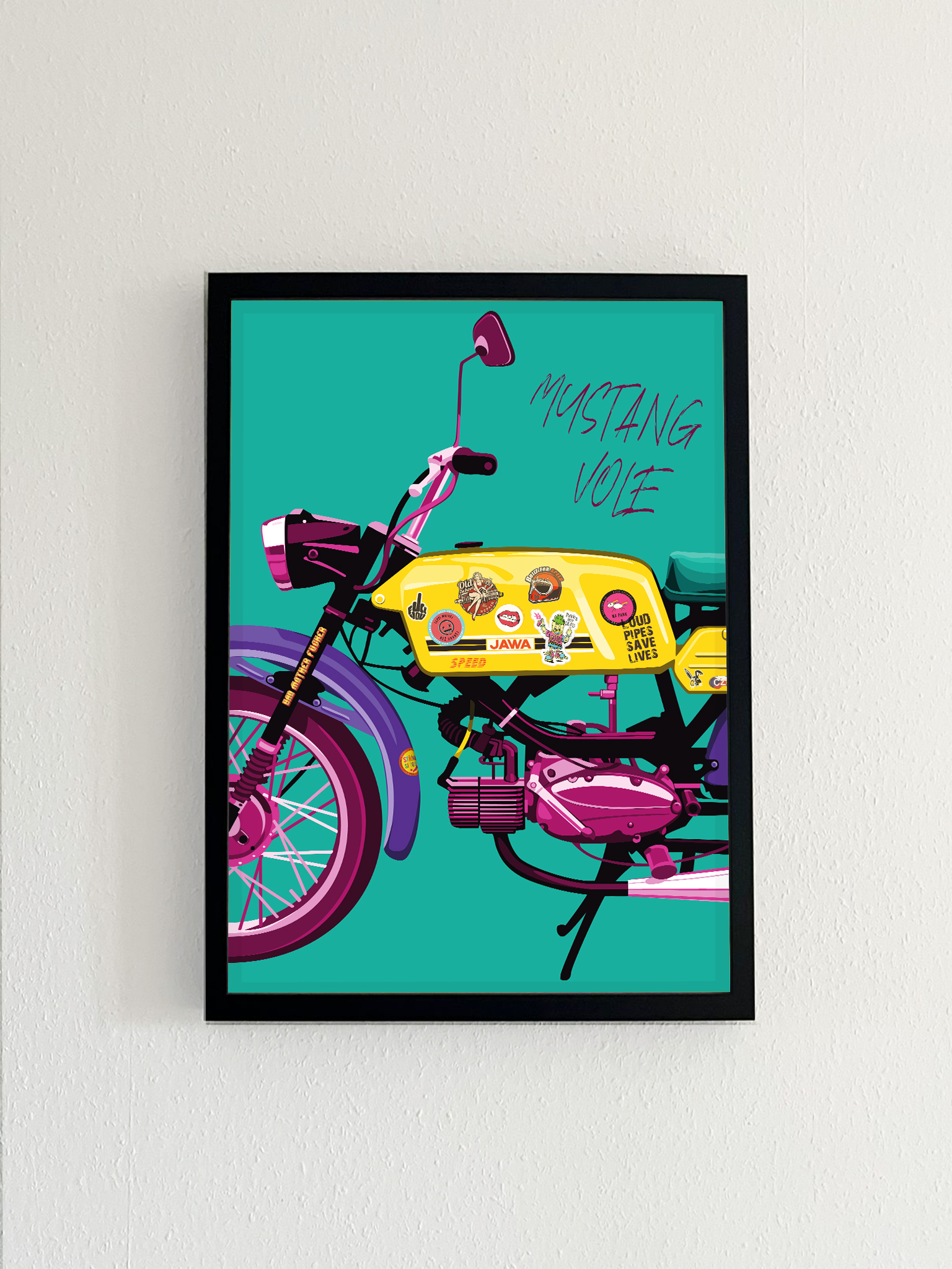 1. Historická hodnota a nostalgie: Jawa 50 Pionýr 23, známý také jako Mustang, Mustoš, Fichtl, Pincek…, je ikonou československého motocyklismu. Tento plakát přináší vzpomínky na dobu, kdy tyto motocykly brázdily silnice a staly se součástí mnoha příběhů. Je to víc než jen dekorace – je to kus historie.