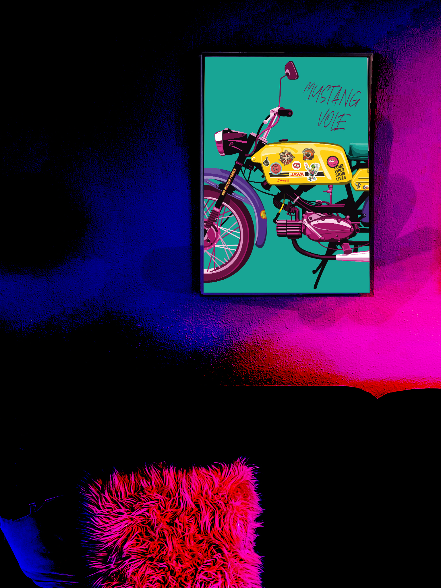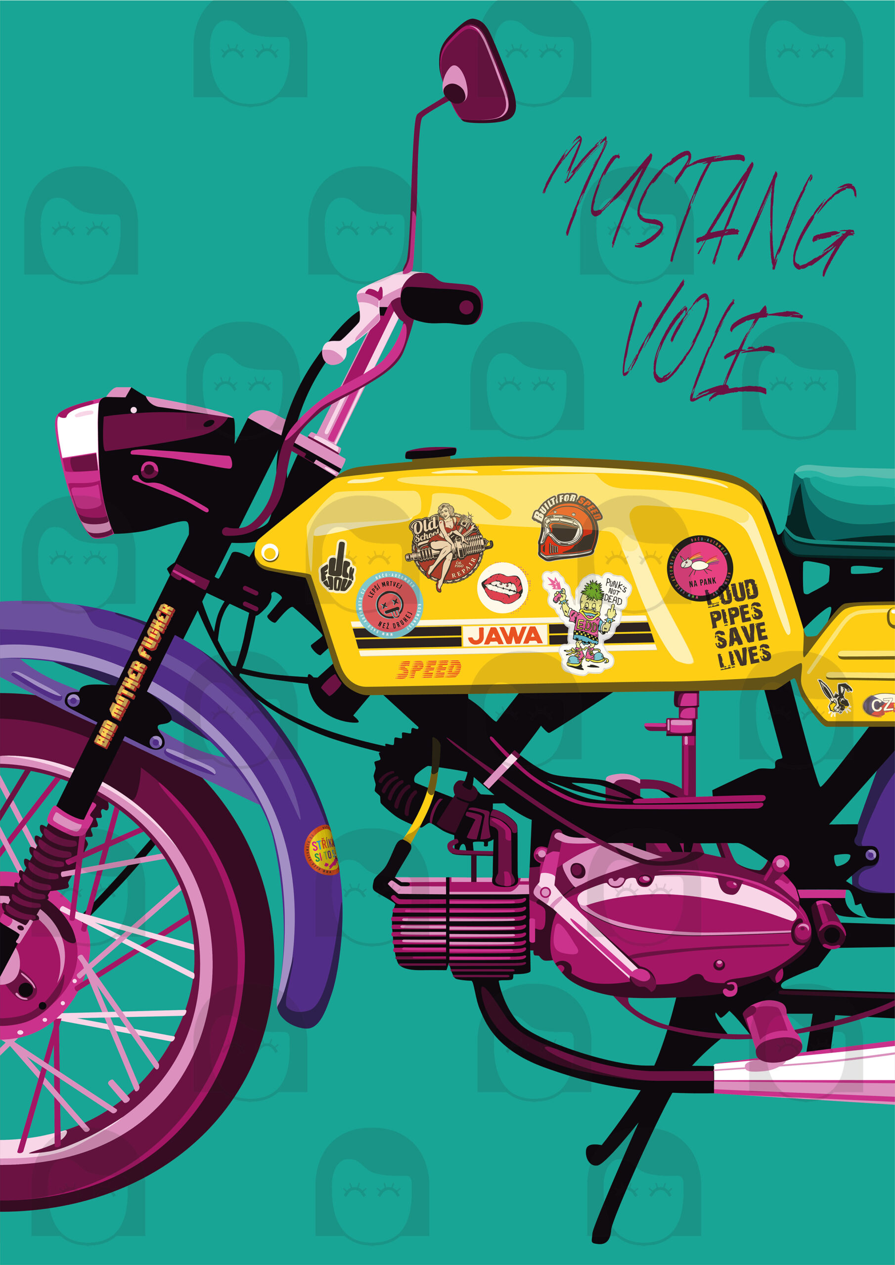Představte si, jaký dojem by udělal tento nádherný MOTOPLAKÁT – ZELENÝ MUSTANG VOLE! na stěně vaší dílny, bytu nebo kanceláře. Tento výjimečný produkt není jen obyčejným plakátem, je to kousek historie a vášeň pro motocykly zachycená v umělecké podobě. Plakát vznikl v autorské dílně Malá bulgarinka v rámci projektu Motoplakáty.