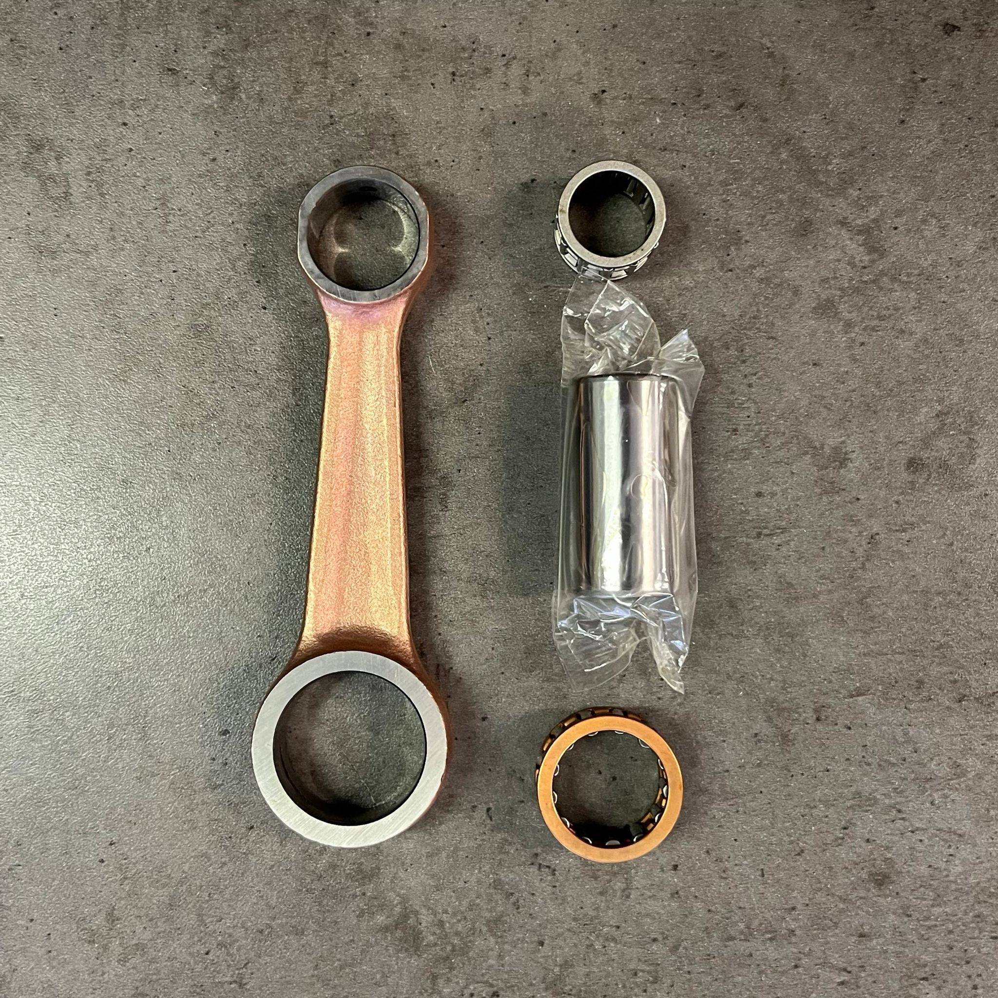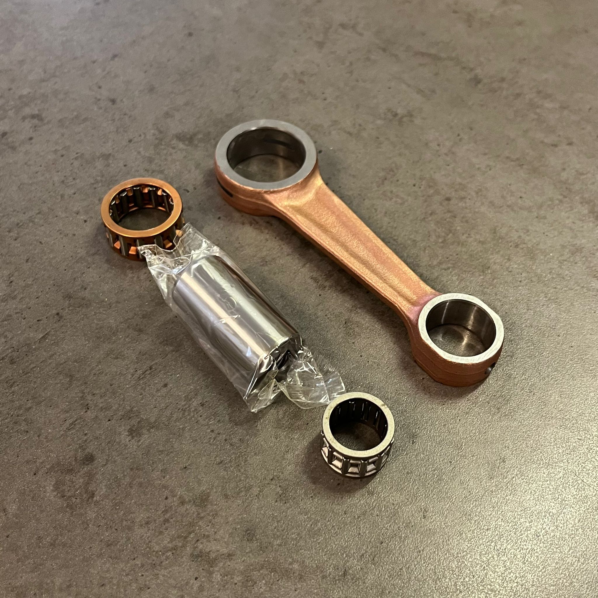Kompletní ojnice na jehlových ložiskách je ideální volbou pro spolehlivý provoz vašeho motoru. Tato ojnice klikové hřídele je dodávána jako kompletní sada, která zahrnuje také klec pro pístní čep. V balení najdete celkem 4 díly: 1x ojnici, 2x ložisko a 1x spodní čep ojnice. Tato sada je navržena tak, aby splnila všechny vaše požadavky na kvalitu a výkon.