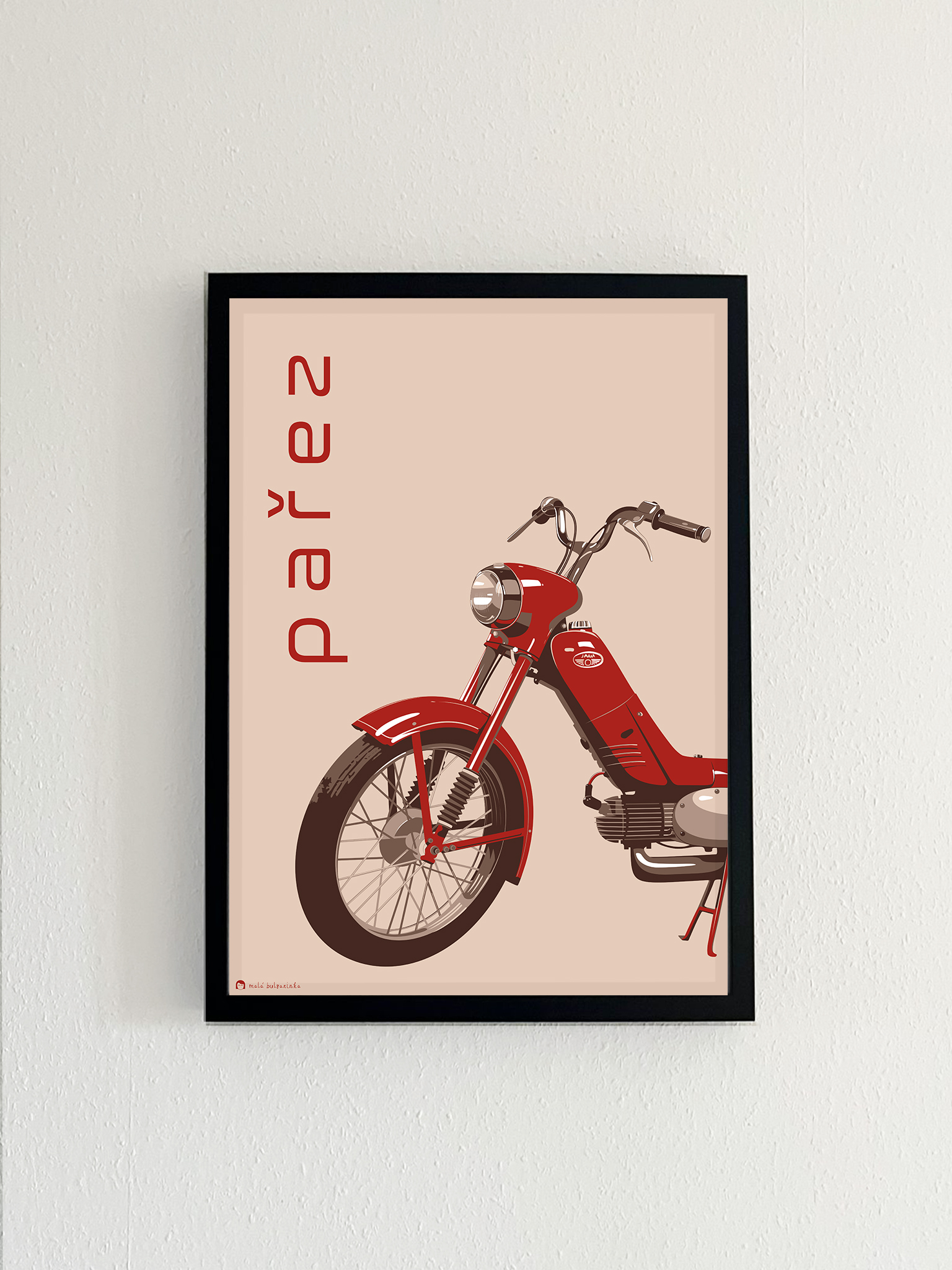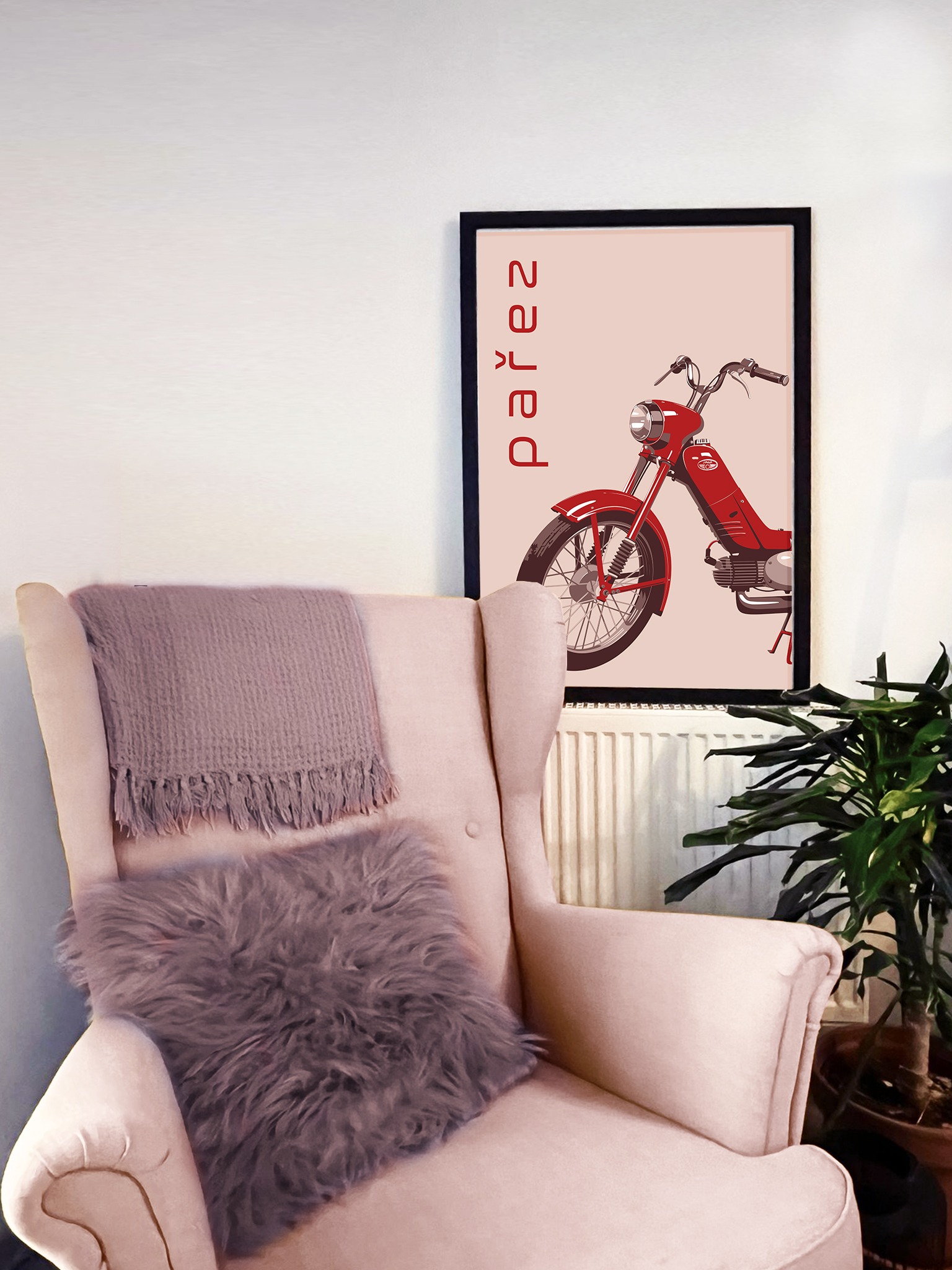 Představte si, jaký dojem by udělal tento nádherný MOTOPLAKÁT – JAWA PAŘEZ na stěně vaší dílny, bytu nebo kanceláře. Tento výjimečný produkt není jen obyčejným plakátem, je to kousek historie a vášeň pro motocykly zachycená v umělecké podobě. Plakát vznikl v autorské dílně Malá bulgarinka v rámci projektu Motoplakáty a je prvním z řady unikátních designů, které oslavují kultovní motocykly.