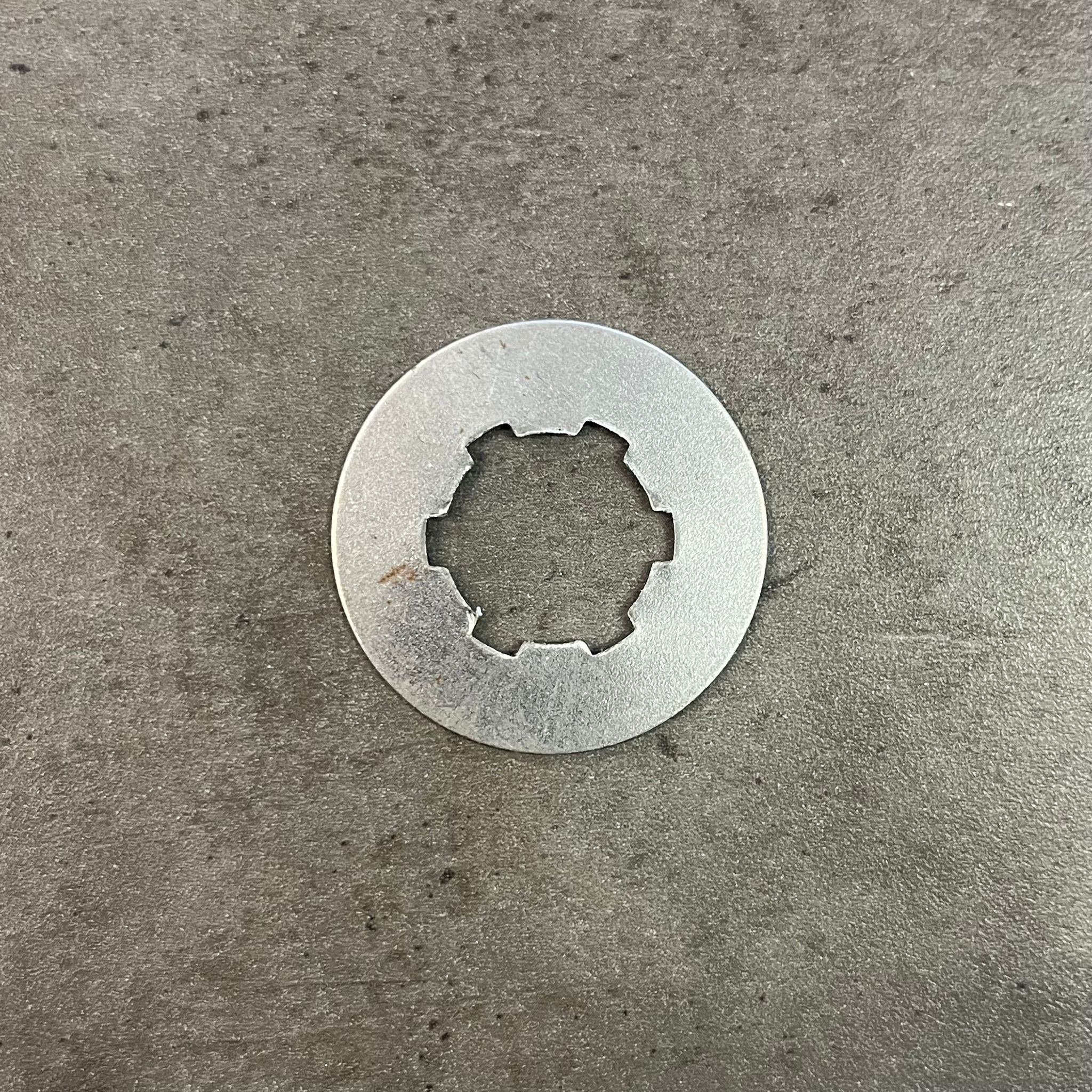 Pojistná podložka sekundárního kola – nedílná součást motocyklu Jawa 50 Pionýr.