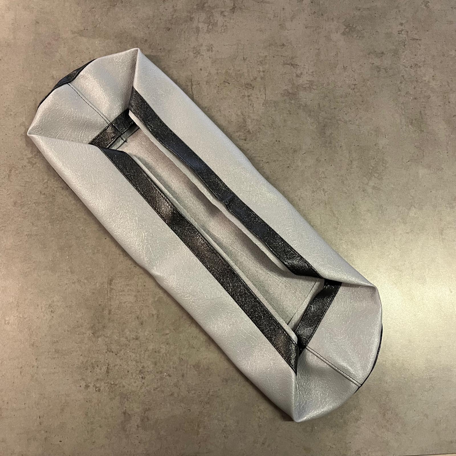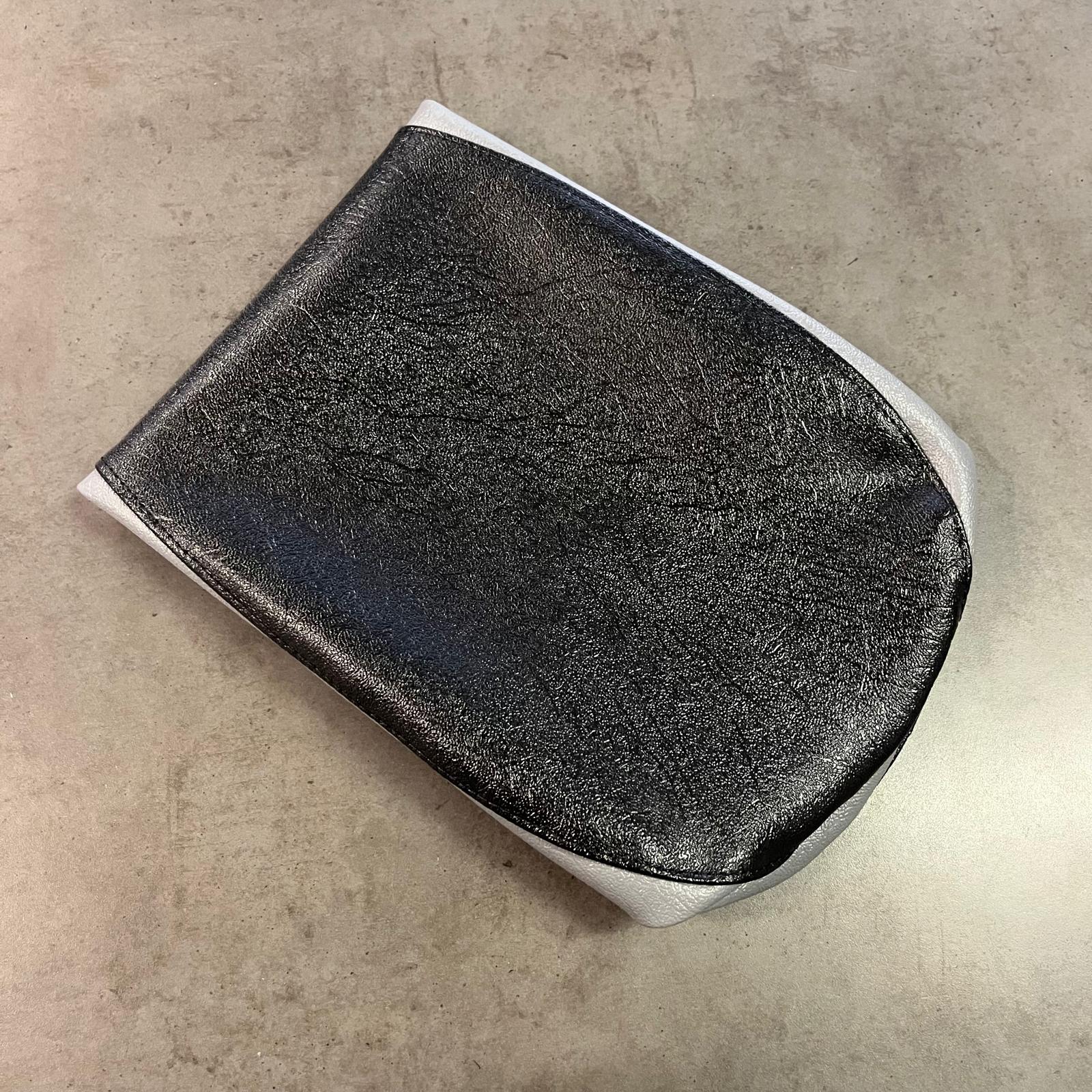 Potah sedla v elegantní černošedé kombinaci, upevňovaný na spony.