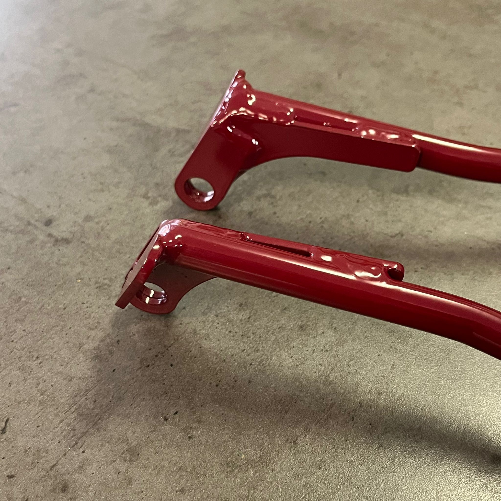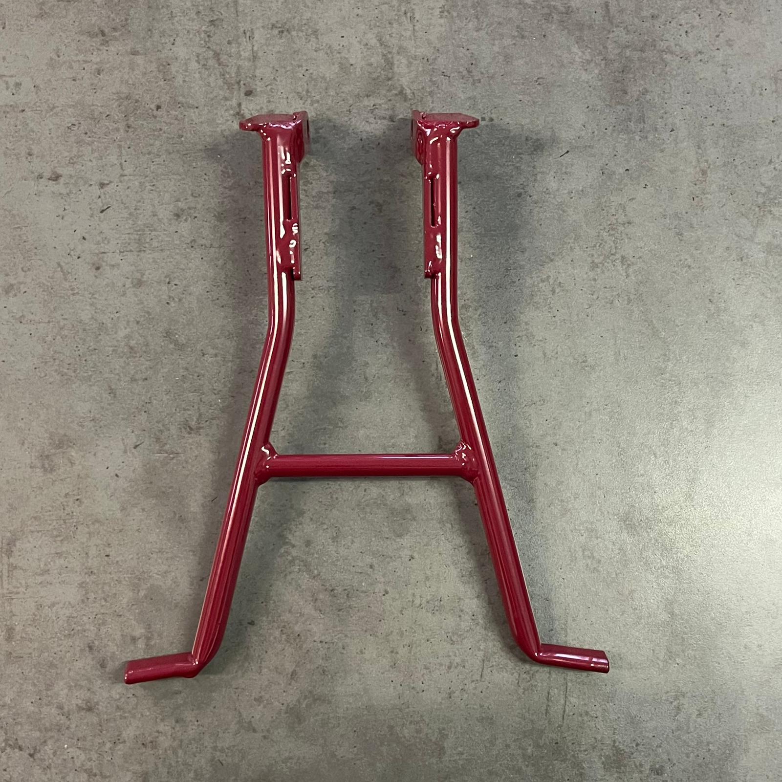 Tento stojan, vyrobený v České republice, vyniká precizním zpracováním a věrností originálu. Na rozdíl od běžných alternativ nejsou konce stojanu (nožičky) pouze ohnutými trubkami, ale jsou opatřeny kvalitně navařenými pásovinami, přesně tak, jak to bývalo u původních modelů. Příčka hlavního stojanu má průměr odpovídající originálu, což zajišťuje perfektní usazení do držáku na výfuku. Celý stojan je navíc opatřen odolným lakem v ikonické červené jawácké barvě, která dokonale ladí s vaším motocyklem. Skvělá volba pro všechny, kdo dbají na detail a kvalitu!